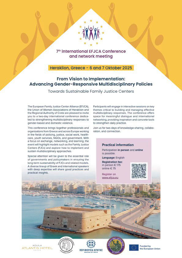 Ráðstefnur EFJCA eru alþjóðlegir viðburðir þar sem sérfræðingar og fagfólk frá ýmsum löndum hittast til að deila reynslu, þekkingu og gagnreyndum aðferðum sem tengjast fjölbreyttum þáttum í málefnum ofbeldis. Á ráðstefnunum eru meðal annars: